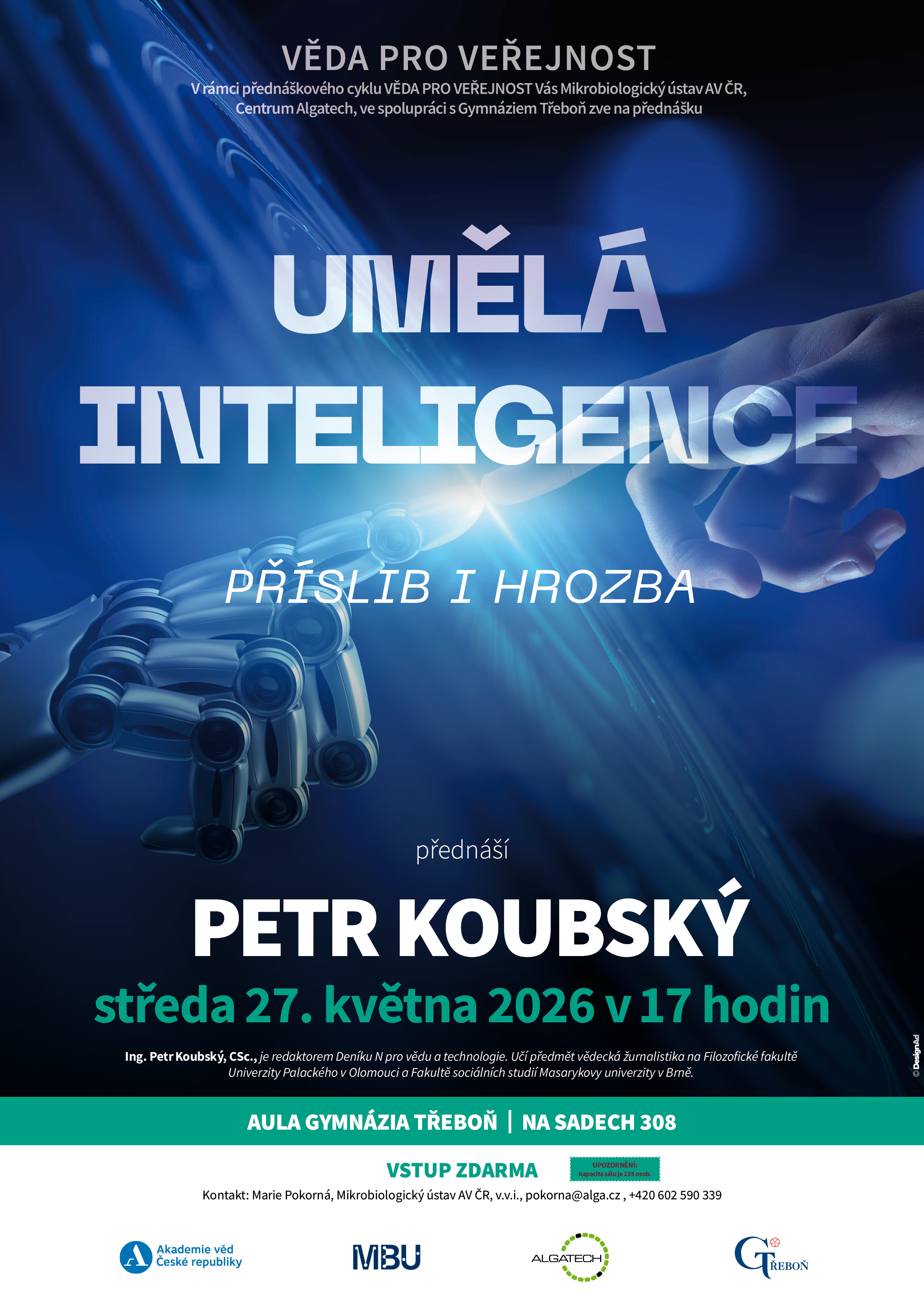 Centrum Algatech, detašované pracoviště Mikrobiologického ústavu AV ČR, podepsalo s Gymnáziem Třeboň memorandum o spolupráci zaměřené na podporu vzdělávání studentů se zájmem o přírodovědné obory – biologii, biochemii, genetiku, molekulární biologii či biotechnologii.
